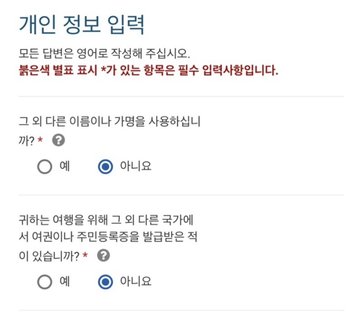 기타 자동으로 채워지지 않은 여권 발급일, 주민등록번호 등을 입력해주세요.