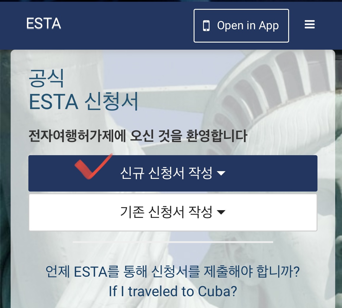 온라인으로 신청할 수 있고, 여행 출발 전에 ESTA 승인을 완료해야 합니다. (신청 시, 개인 정보와 여행에 대한 질문에 답을 작성합니다.)