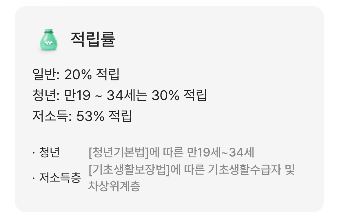 K패스는 특정 사용자에게 추가 적립 혜택을 제공하여 교통비 부담을 줄여줍니다. 지원 대상을 크게 일반, 청년, 저소득층으로 구분하는데요. 만 19~34세 청년인 저는 매 교통수단 사용시 30%를 포인트로 적립할 수 있었습니다.